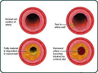 - Plaque rupture can lead to blood clot (thrombus) formation, which can completely block the artery → heart attack.